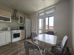 Кухня с балконом оборудована всей необходимой техникой и мебелью.