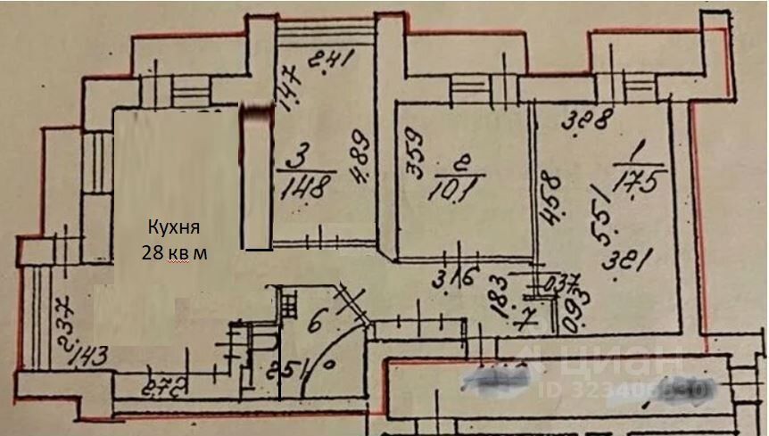 - Кухня-гостиная 28 кв метров. Комнаты площадью 17.5+10.1+14.8 квадратных метров