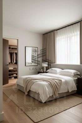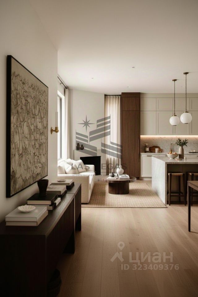 Просторная гостиная с панорамными окнами наполнена естественным светом, подчеркивающим сбалансированные пропорции и изящные линии интерьера. Функциональная кухня-столовая оснащена высококачественной встроенной техникой и организована с учетом повседневного удобства. Уютная спальня с камерной атмосферой обеспечивает приватный отдых, а продуманная организация пространства демонстрирует заботу о качестве жизни.