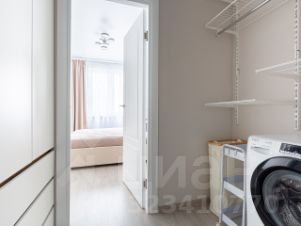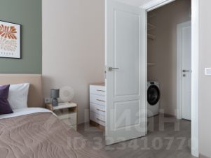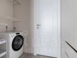 Далее идет небольшая постоянная - гардеробная, где по одну сторону установлена стиральная машина и полки для хранения , а по другую сторону - вместительный шкаф.