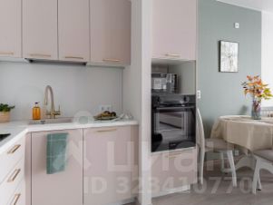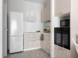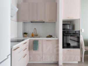 Из прихожей мы попадаем сразу же в зону кухни. Там установлена новая кухонная мебель, с доводчиками и необходимым местом хранения, посудомоечной машиной, варочной панелью, духовкой и холодильником.