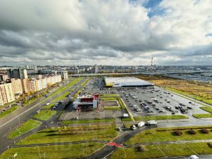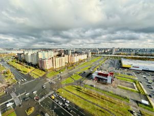 Завораживающий вид на Приморский район с 21го этажа. На первых этажах в доме находится множество кафе, магазинов, аптек и др. Есть достаточное количество парковочных мест.