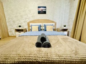 В квартире Вас ждет оборудованная кухня, удобная двуспальная кровать с матрасом Askona, обещающая спокойный и крепкий сон, вся необходимая техника.