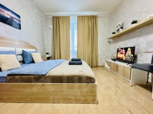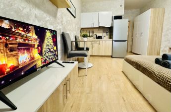 Видовая студия с качественным ремонтом, в которой могут комфортно разместиться два человека.