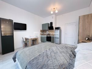 Квартира идеально подойдет для одного человека или молодой пары, ценящих комфорт и удобство. Студия полностью меблирована и оборудована всем необходимым для комфортного проживания: удобная двуспальная кровать, функциональная кухня с современной техникой, стильная ванная комната и просторный балкон, где можно насладиться утренним кофе или вечерним закатом.