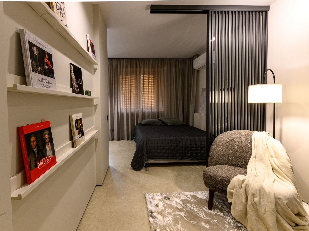 — Удобная спальня с ортопедическим матрасом размером 160х200 и кроватью с подъемным механизмом для дополнительного хранения.