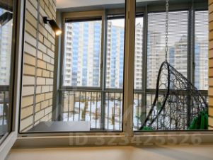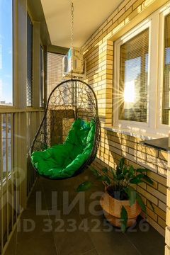 — Балкон с качелями, столиком и розетками для рабочего места.