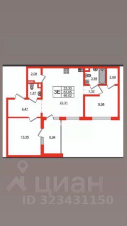 22,3 м²