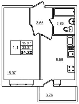 34 м²