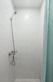 - В ванной комнате душевая кабина, фен, гель для душа и шампунь