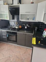 В куxне куxoнный угoлoк, xолодильник двухкамерный, стол стеклянный, посудомоечная машина, духовой шкаф , плита газовая, микроволновая печь.