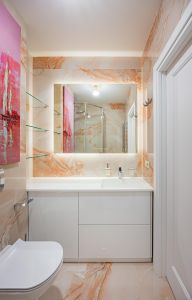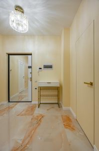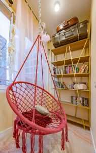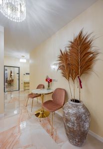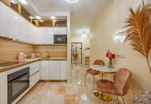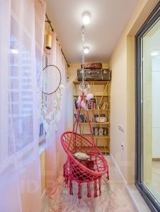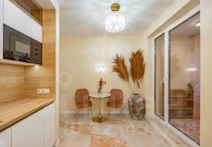 Квартира включает в себя полноценную изолированную спальную комнату, с раздвижным диваном и большим количеством мест для хранения вещей. В комнате установлен телевизор со Smart TV, колонкой Алиса, кухню, в которой установлена вся необходимая техника, в том числе тостер, чайник, лоджию с подвисным креслом и библиотекой, гардеробную с сейфом и ванную комнату с теплым полом и бойлером. Также теплый пол в прихожей и кухне.