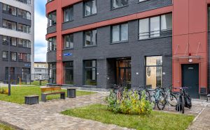 В доме видеонаблюдение, детские площадки, спортивные площадки, колясочная и места для хранения велосипедов. Рядом гипермаркет Лента, кофейни, магазины, Аптеки. Удобный выезд из города, на ЗСД и КАД. До метро 15 минут на транспорте.