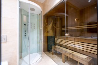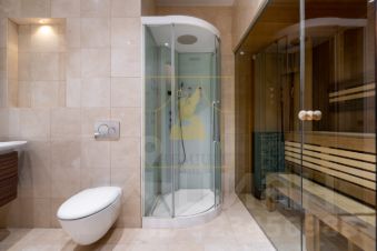 Две ванные комната: душевая с большим зеркалом во всю стену и мини солярий в душевой кабине, вторая ванная с финской сауной Harvia. Везде установлены кондиционеры Mitsubishi.