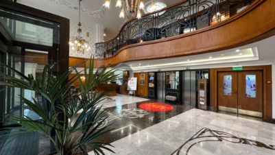- Просторное лобби с зоной ожидания, камином и консьерж-сервисом