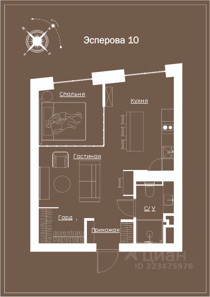 Предлагаем в аренду элегантную и стильную 1-комнатную квартиру в элитном жилом комплексе Esper Club по адресу: ул. Эсперова, д. 10 (Петроградский район).