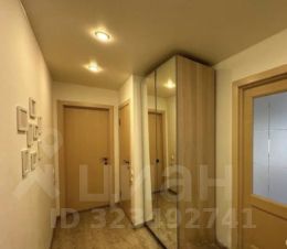 -В прихожей большой двустворчатый шкаф с зеркальными дверями, обувница и дополнительный рейл для одежды.