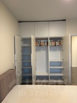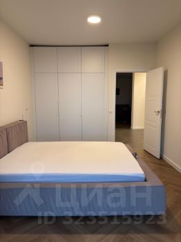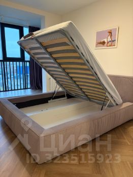 Спальня — двуспальная кровать с подъёмным механизмом и большим шкафом.