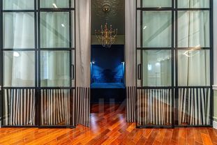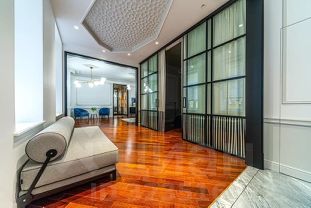 Парадный вход с проспекта Добролюбова , входит в 10 самых красивых парадных СПб : полностью отделан редкими породами итальянского мрамора , хрустальными люстрами , камином и витражами . Второй вход в квартиру из прекрасного чистого двора , выложенного брусчаткой , ведущий прямо от парковочного места на кухню. Новая отделка квартиры в стиле французского шика от известного итальянского архитектора Амедео Скварцони : мраморные подоконники , полы из красного дерева , восстановленная лепнина и все необходимое для комфортного проживания , включая бытовую технику и столовые предметы для сервировки стола .