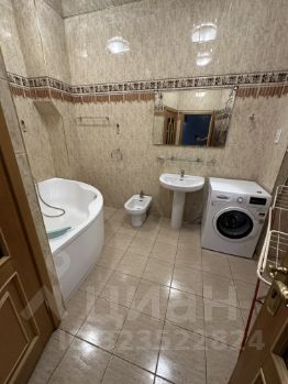Большая ванная комната с туалетом в одном помещении, но туалет изолированный с дверью.