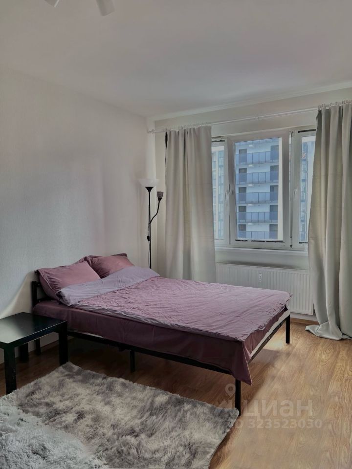 Квартира площадью 36 м² на 9 этаже, с двуспальной кроватью и остекленным балконом.