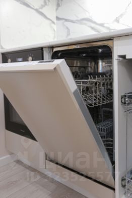 Ремонт выполнен по современному дизайн-проекту. Квартира полностью меблирована и укомплектована всем необходимым: от кухонного гарнитура до встроенной техники (холодильник, ТВ, посудомоечная и стиральная машины). Комфорт дополняет лоджия и планировка санузла: сложенные двери душевого ограждения образуют большое свободное пространство.