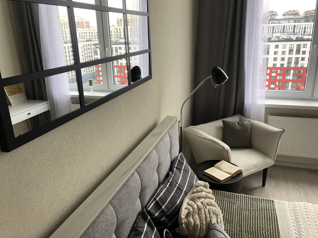 Окна соседних домов находятся ниже и далеко.
