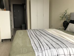 В квартире для сна - двуспальная кровать с подьемным механизмом.