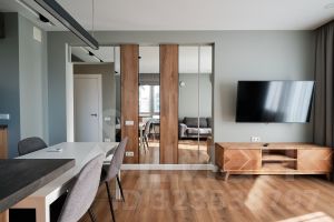 — дизайнерская отделка в светлых тонах: в интерьере приятно сочетаются натуральные материалы и мебель в скандинавском стиле с раритетными нотами;