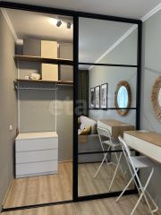 Основная комната , является отдельным уютным уголком данной квартиры с большим двухспальным диваном, тумбой под ТВ зону, вместительное гардеробное пространство для хранения, гладильная доска , так же имеются вешалки для одежды.