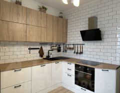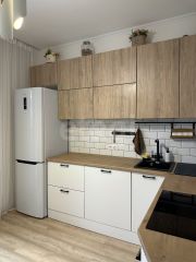 Вся необходимая техника и мебель в наличии:холодильник, полноценная кухня с мойкой, столом и стульями, духовой шкаф, вытяжка, электроплита , посуда первой необходимости.
