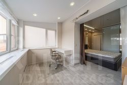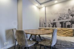 На кухне: встроенный холодильник, посудомойка, микроволновая печь, плита и духовой шкаф, кофемашина, термопот. Стиральная машина, пылесос. Просторная ванная комната. На кухне и в ванной теплые полы. Кондиционер. Много мест для хранения вещей и одежды.