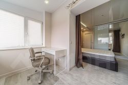 В спальне - двухспальная кровать с хорошим ортопедическим матрасом, новый телевизор Samsung последней модели.