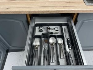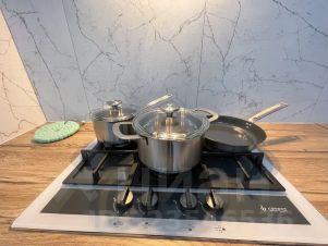 Современная и полностью оборудованная кухня оснащена всем необходимым для приготовления вкусных блюд: плита, духовка, холодильник, микроволновая печь, чайник. Вся посуда новая, стильная.