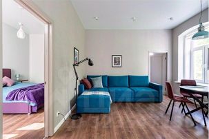 Квартира расположена в историческом центре Санкт-Петербурга на улице Рубинштейна — одной из самых известных гастрономических улиц города.