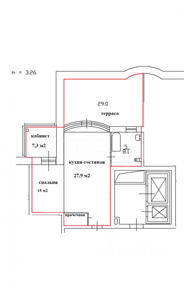 Планировка - спальня, кабинет (на панорамной лоджии), просторная гостиная с камином и с выходом на собственную террасу 29 м2, с которой открывается потрясающий вид на весь город, оборудованная кухня (винный шкаф, посуд. машина, микроволновка с пароваркой, холодильник с функциями охлаждения воды, приготовления льда, приготовления холодной газировки для коктейлей), ванная комната с окном (ванна, душевая кабина), прачечная (стиральная машина с функцией сушки, стайлер). Полы - наборная отделка ониксом, с подогревом (зонально). Кондиционеры. Паркет с функцией массажа стопы.
