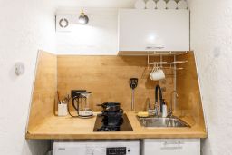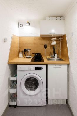 - Кухонная зона: холодильник, микроволновая печь, чайник, варочная панель, посуда и столовые приборы (имеются бокалы для вина), стиральная машина и стиральный порошок