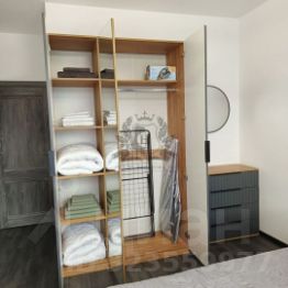 Оснащена всем необходимым для комфортного проживания: холодильник, стол, стулья, микроволновая печь, чайник, кухонные принадлежности, варочная панель, духовой шкаф, вытяжка, стиральная машина, двуспальная кровать-диван, хороший матрас, диван, шкаф купе, телевизор, гладильная доска, сушилка для белья, утюг, одеяло, две подушки. Во всей квартире теплый пол, включая балкон. Тропический душ в ванне. Вся мебель новая. Окна квартиры выходят во двор. Квартира очень светлая и уютная. Сдается впервые