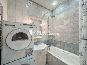 УДОБНЫЙ СОВМЕЩЕННЫЙ санузел с полноразмерной ванной. Здесь стиральная и сушильная машины ASKO.