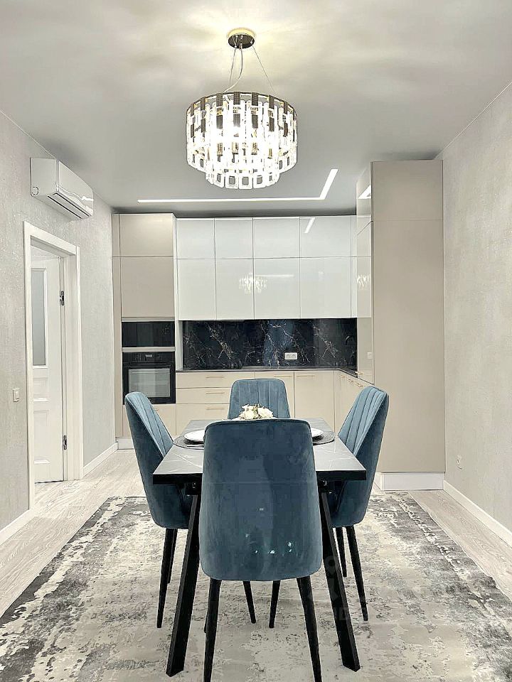 В квартире выполнен дизайнерский ремонт, установлены кондиционеры (сплит-система), полностью укомплектована мебелью и техникой: холодильник, индукционная плита, микроволновая печь, посудомоечная машина фирмы Smeg, духовой шкаф фирмы - Electrolux, осветительные приборы фирмы-Maitoni, диван-Garda Decor, кухонный гарнитур фирмы Мария, смесители и мойка фирмы Omoikiri, мебель фирмы Кардинал, интерьерные элементы и текстиль.