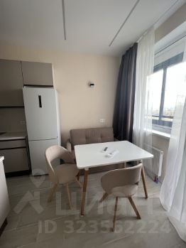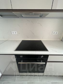 В кухне-гостиной: обеденный стол, стулья,небольшой раскладной диван, телевизор, кухонный гарнитур, выполненный на заказ, варочная поверхность, духовой шкаф, вытяжка, холодильник, микроволновая СВЧ-печь, чайник.