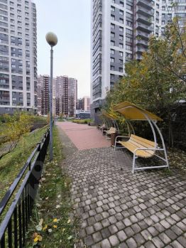 Во дворе спортивные и детские площадки. Территория благоустроена и содержится в чистоте и порядке, бежит ручей. Приятная и спокойная атмосфера.