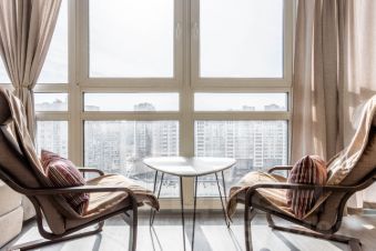 * Отдельная зона отдыха рядом с панорамными окнами в пол
