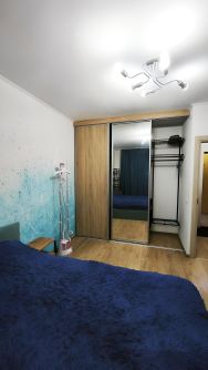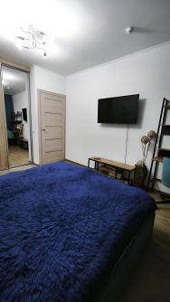 Регулируемое отопление, просторная гардеробная, Смарт-тв, двуспальная кровать с ортопедическим матрасом, прикроватная тумба, места хранения, отпариватель, шторы блэк-аут.