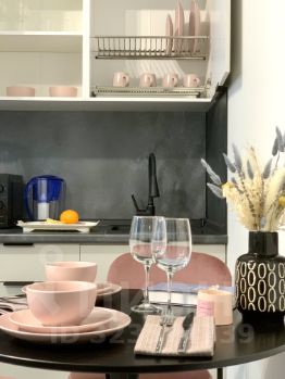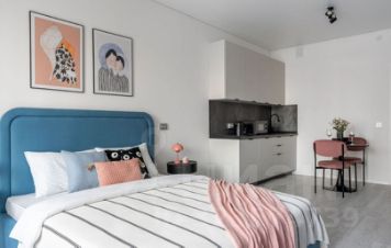 В квартире-студии "Акварель" сочетаются гармония нежных оттенков цвета, современный дизайн квартиры с комфортом проживания, где предусмотрено всё необходимое для проживания.
