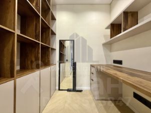 Организовали удобное рабочее место, оборудованное множеством вместительных шкафов для хранения. В кухне-гостиной есть всё необходимое для приготовления пищи, включая обеденный стол.