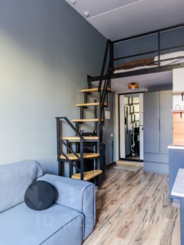 Площадь студии - 22 м² + 5 м² второго яруса.