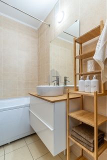 В вашем распоряжении: холодильник, микроволновая печь, плита, духовой шкаф, кофемашина, посудомоечная и стиральная машины, телевизор и многое другое.