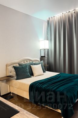 Из мебели: двуспальная кровать, торшер, кухонный гарнитур, духовой шкаф, посудомоечная и стиральная машины, микроволновая печь, холодильник, умный телевизор с алисой, большой вместительный шкаф, комод, обеденный стол.