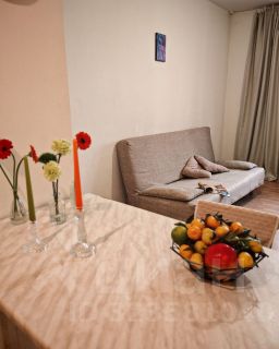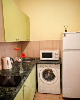 Студия полностью укомплектованыюа необходимой бытовой техникой: холодильник, СВЧ-печь, стиральная машина, стеклокерамическая варочная панель, электрочайник, утюг, сушилка для белья. Подклбюючены проводной интернет и домофон.